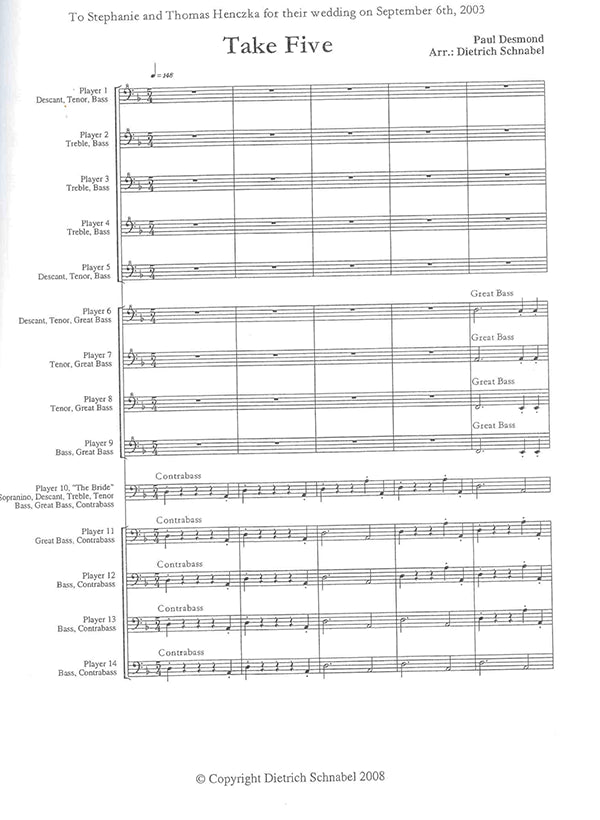 *Arrangement of Jazzy Standard* for recorder orchestra with fourteen players.