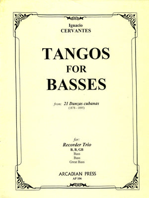 *Two Cuban Tangos* arranged for recorder trio. Includes short composer biography.