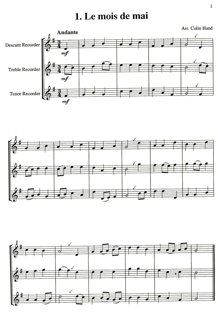 *Ten Elementary French Songs* arranged for recorder trio.