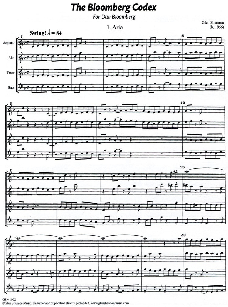 *Contemporary Recorder Quartet* written for Dan Bloomberg. Includes a page of introductory notes in English.
