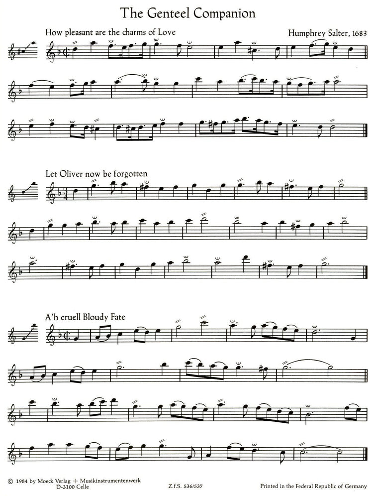 *15 Pieces* selected from Humphrey Salter's volume The Genteel Companion (1683). Introductory note and Table of Ornaments included as a performance guide.
