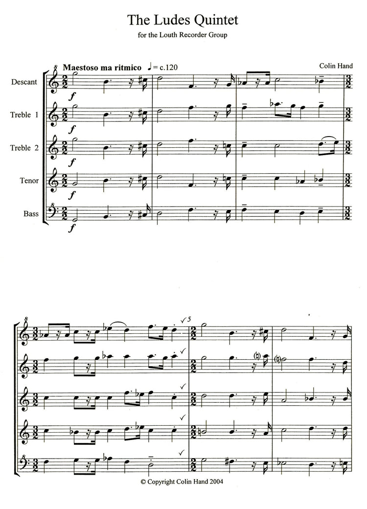 *Contemporary Quitet* written for SAATB recorder quintet.