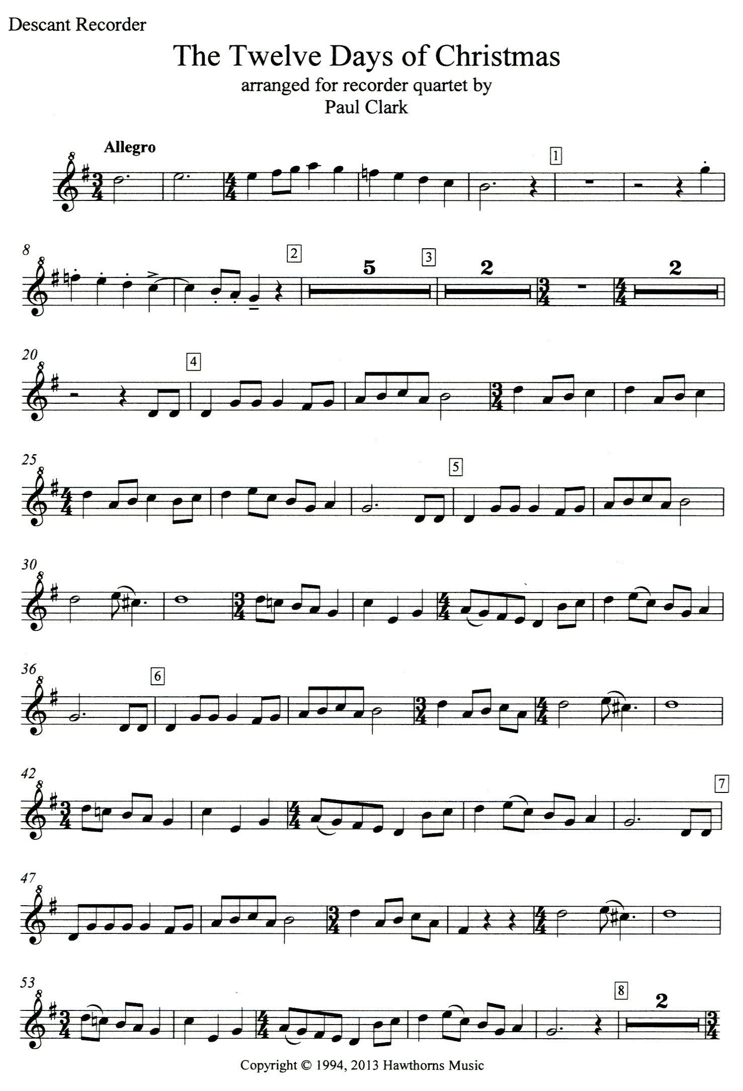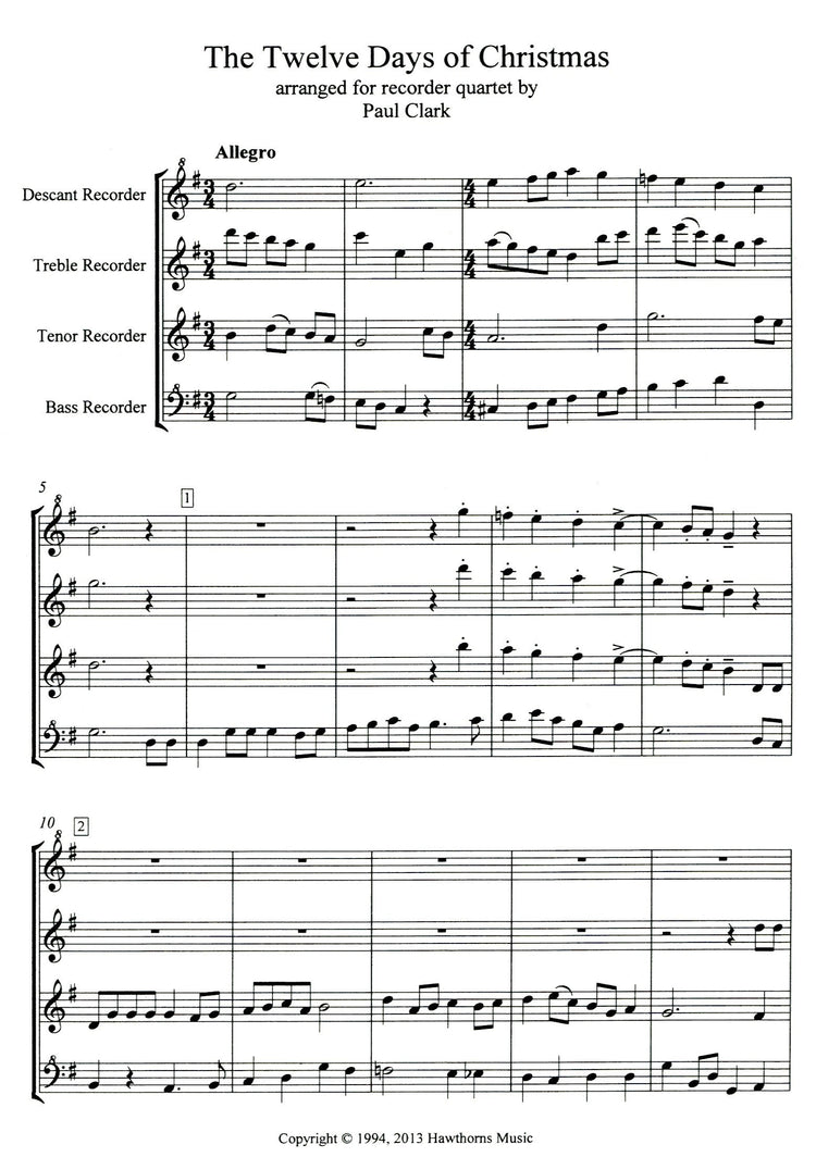*Famous Chirstmas Carol* arranged for SATB recorder ensemble.