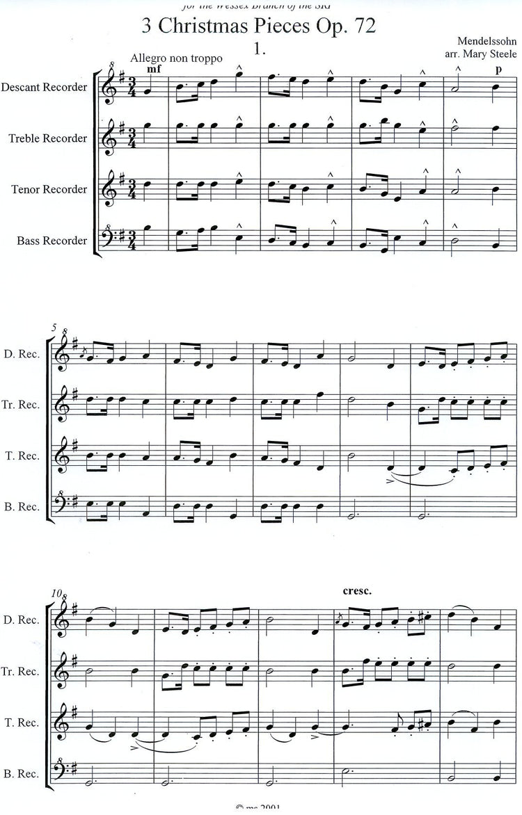 *Recorder Quartet Arrangement of Mendelssohn's Christmas Music*.