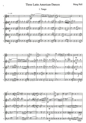 *Three Intermediate Latin American Dances* for recorder quintet which explore the distinctive rhythms used for these dances.