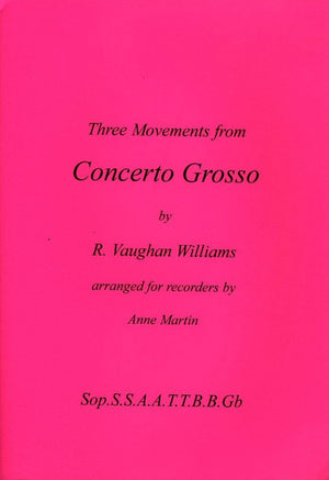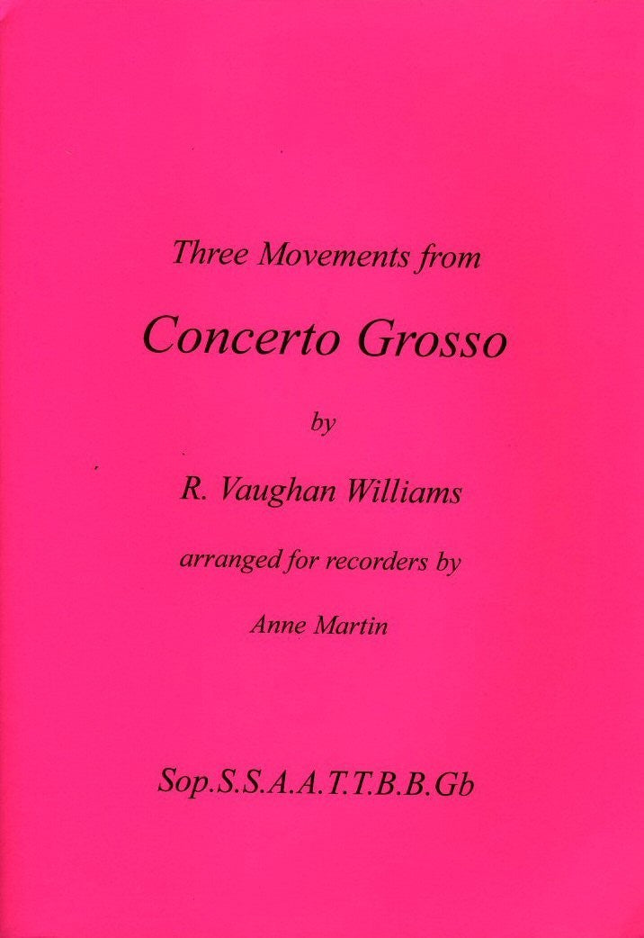 R. Vaughn William's Concerto Grosso was originally written for string orchestra. It was commissioned by the Rural Music Schools for the twenty-first anniversary of the movement celebrated in the Albert Hall on November 18th 1950. The Concertino parts were written for more advanced players.