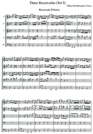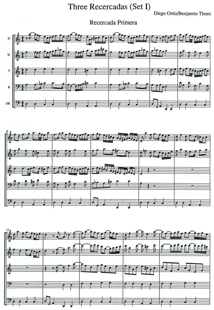 *Contemporary Pieces.* Three of Ortiz recercadas (variations over ground basses) have been extended and arranged for quintet.