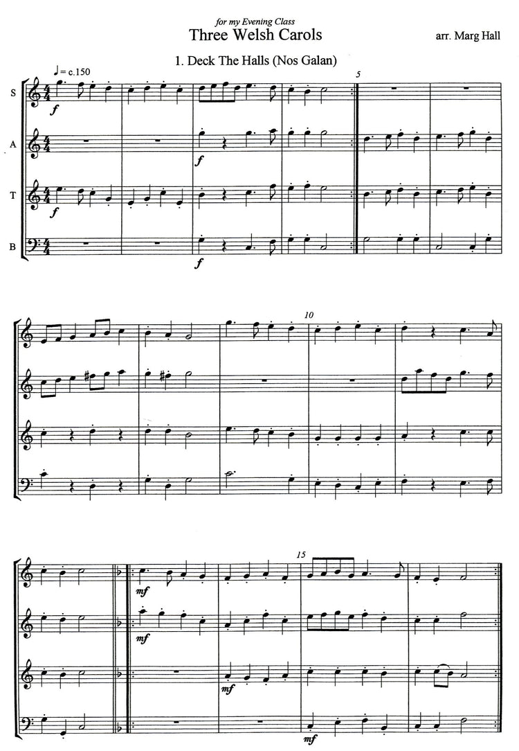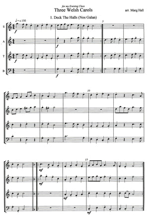 *Three Welsh Carols* arranged for recorder quartet. Nice arrangements which will be challenging for a beginner ensemble and easy reading for an intermediate group.