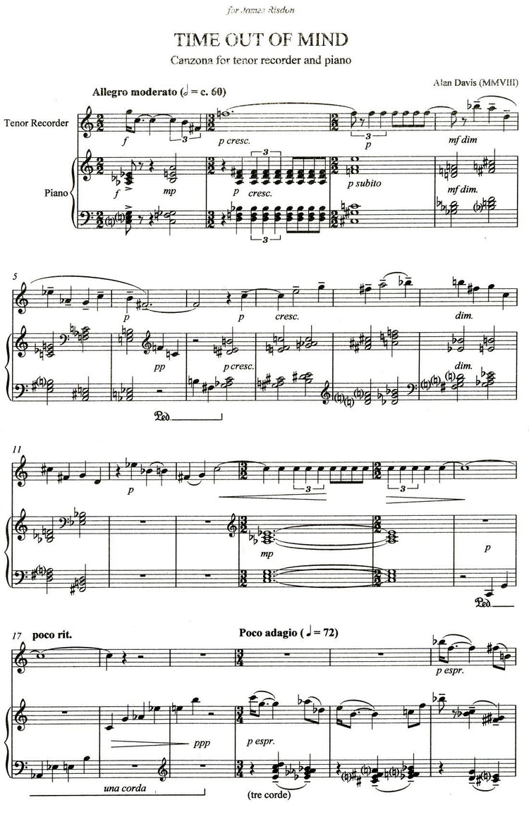Composer Alan Davis was born in Birmingham in 1945. He studied at the Royal College of Music, Keble College Oxford, and undertook postgraduate research on the music of Hotteterre at Birmingham University.