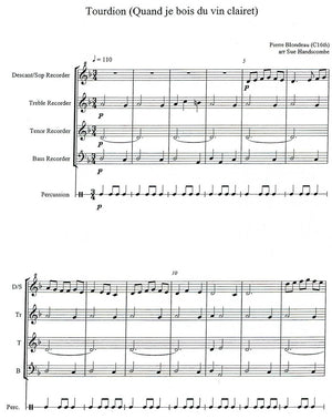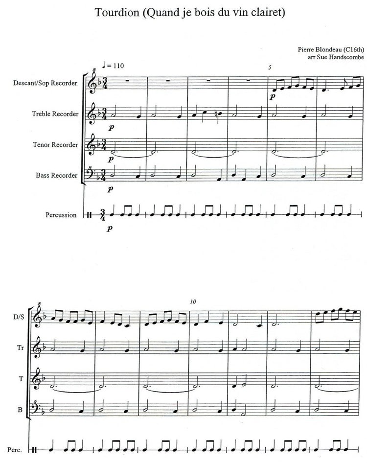Instrumentation: Descant - Treble - Tenor - Bass + optional Tabor