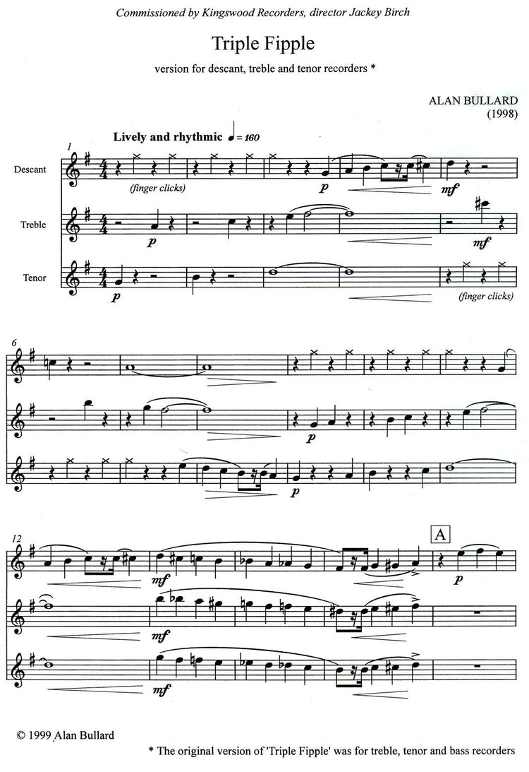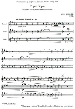 Originally written for treble, tenor and bass recorders in 1998 (Cat no. P030). The composition was commissioned by Kingswood Recorders. This arrangement is for descant, treble and tenor recorders.