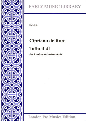 *Renaissance Madrigal.* Tutto il di pianog is one of a small handful of three-part pieces by Rore, most of whose madrigals are in four or five parts. The layout of the parts is also unusual, with two equal upper parts and a third part of tenor range. The level of invention and counterpoint is very much what one would expect from Rore, the most gifted madrigal composer of his generation.
