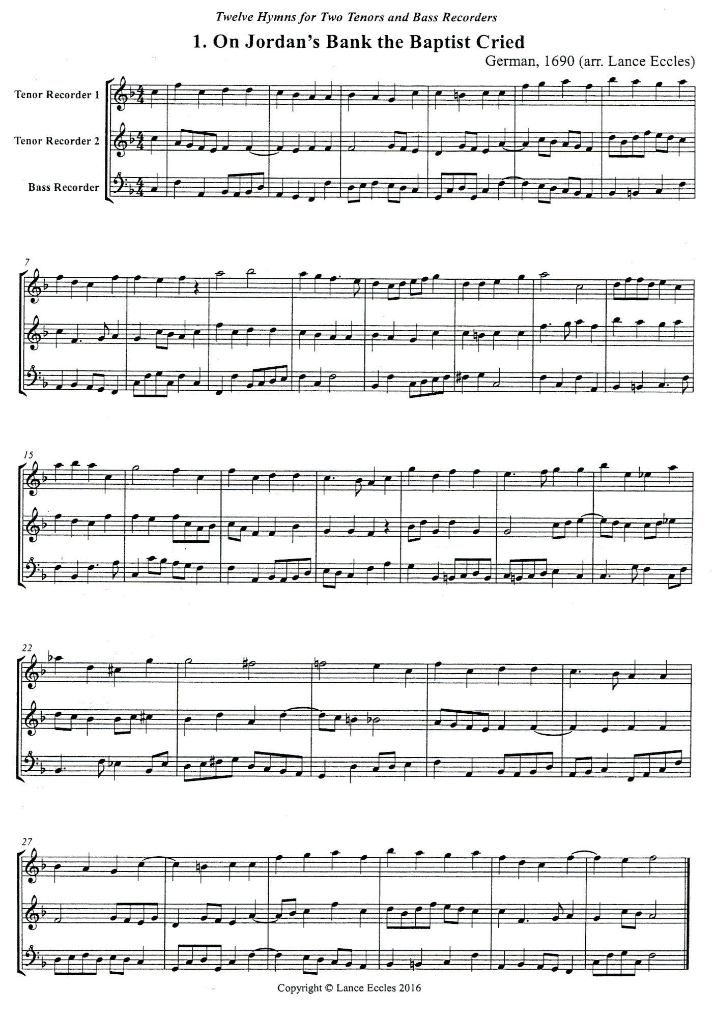 *Twelve Hymns* for Recorder Trio.