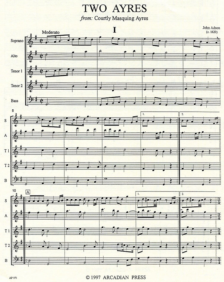 Instrumentation: Sopranino - Treble - 2 Tenors - Bass