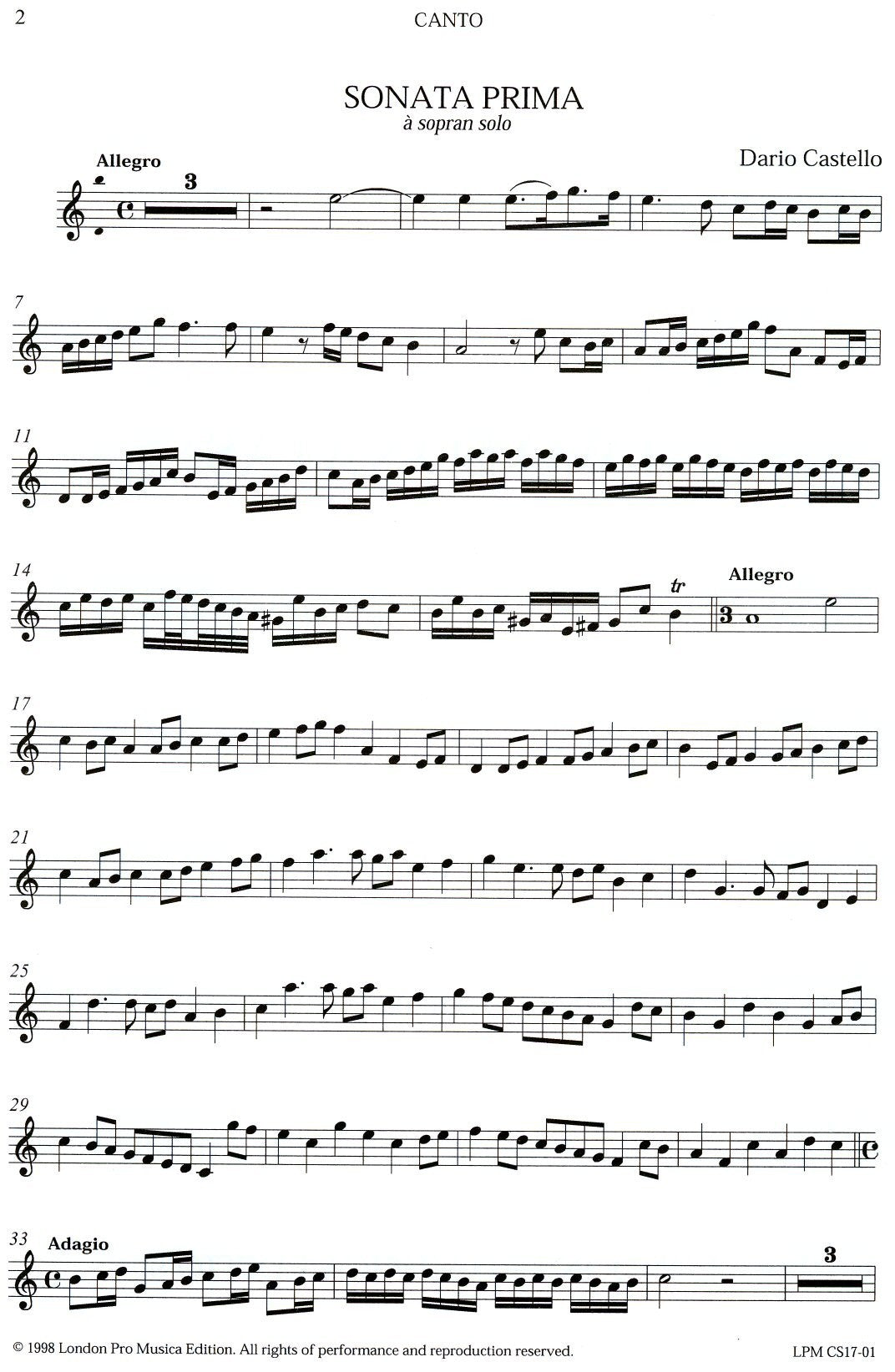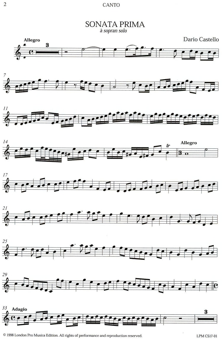 *Two Traditional Early Baroque Sonatas* in contrasting multiple duple and triple sections. Introductory, performance and editorial notes included.