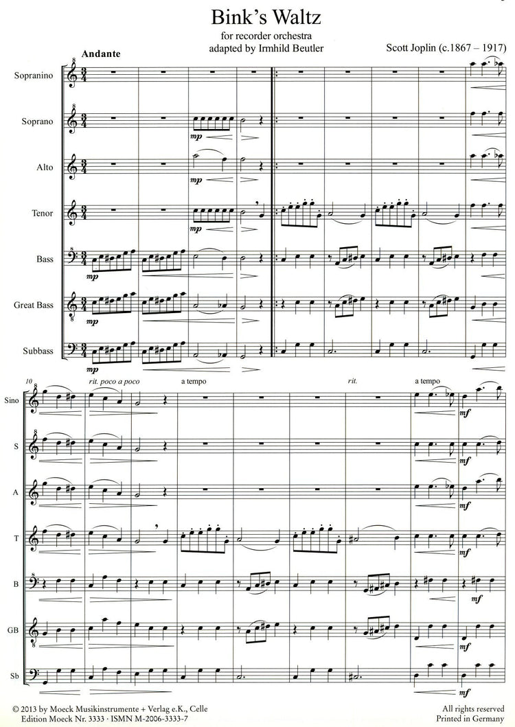 *Two Jazz Waltzes for Recorder Orchestra.*