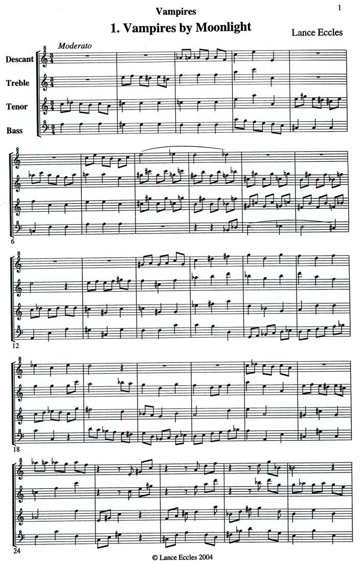 Vampires is a characterful suite in a three-movement fast-slow-fast structure: "Vampires by Moonlight", "Vampire Grotto", and "Vampires at the Gates of Paradise". This is perfect for a Halloween concert, and is of moderate difficulty.