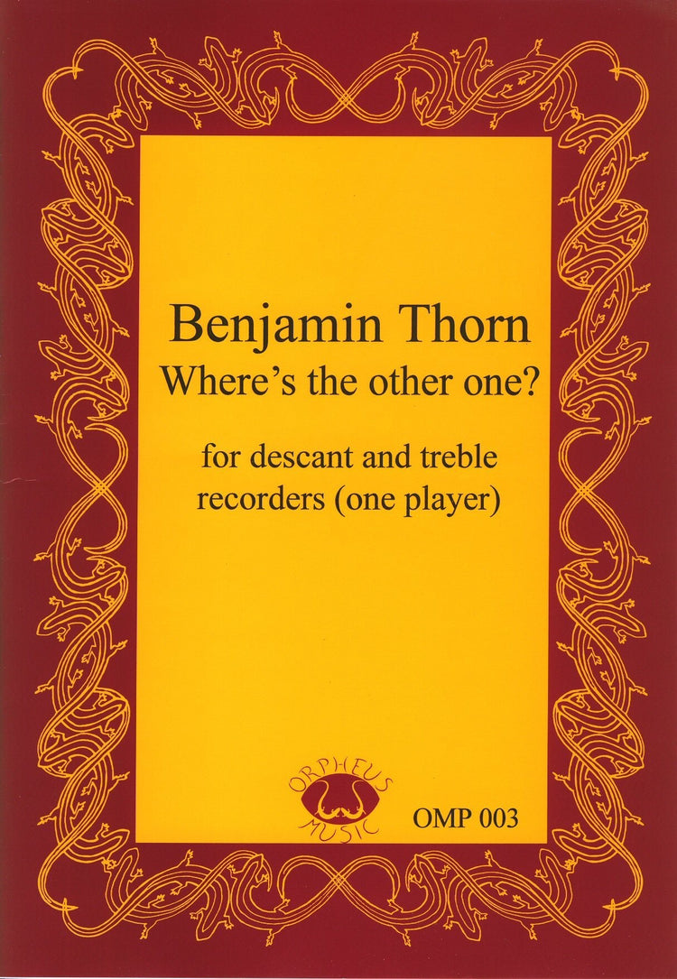 Where's the other one is a three movement work, its outer movements being characterized by fast tempos, changing meters, and the continuous altering of a brief melodic shape. The middle movement is more through-composed and less rhythmic. Though the compass of notes available in a piece for two recorders played by a single performer (thus the witty title) is very small, Thorn manages to get quite a lot from the situation by using the instruments in counterpoint as well as parallel motion.